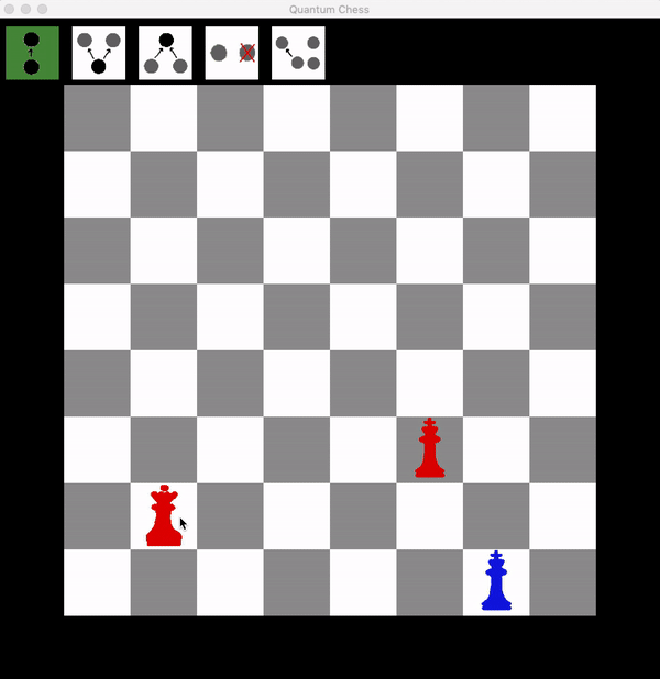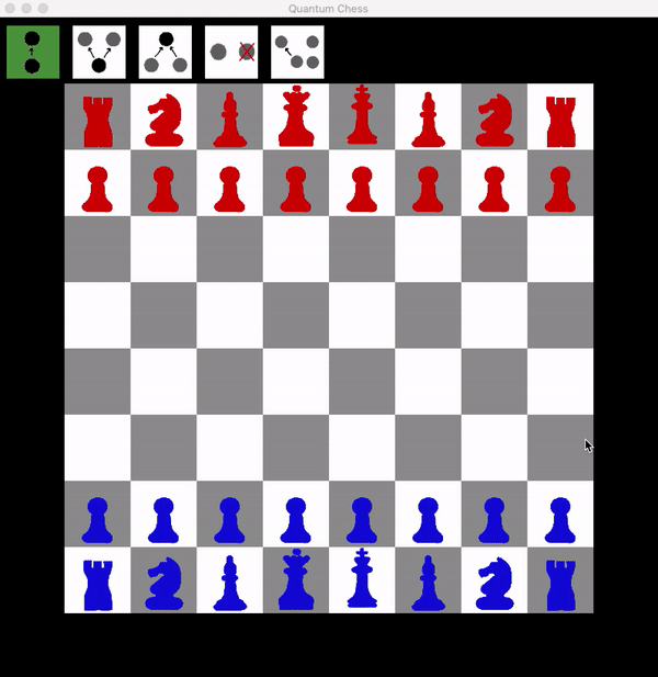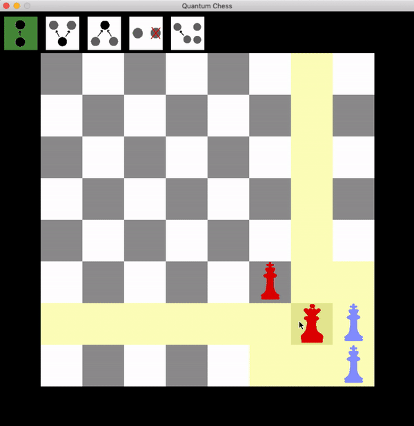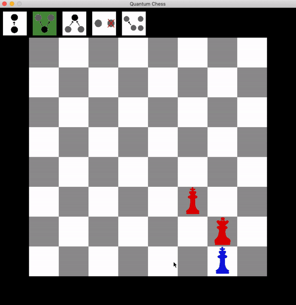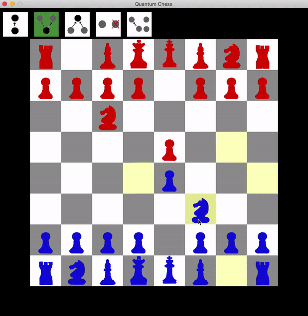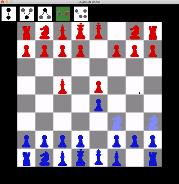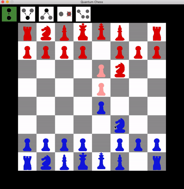 There are five modes of movement you can choose between in quantum chess: Move, Split, Merge, Collapse, and Branchmove.